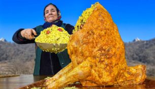 Azerbaijani Pilaf Cooked in A Ram! A festive Dish in the Village