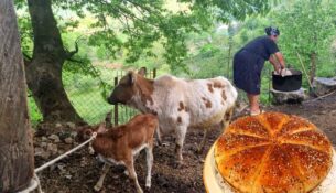 GRANDMOTHER COOKS HOLİDAY BREAD IN THE MOUNTAINS